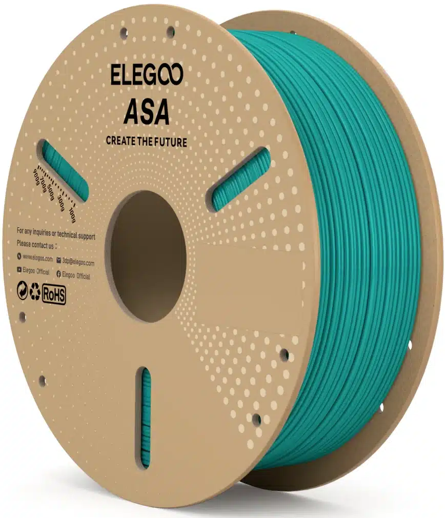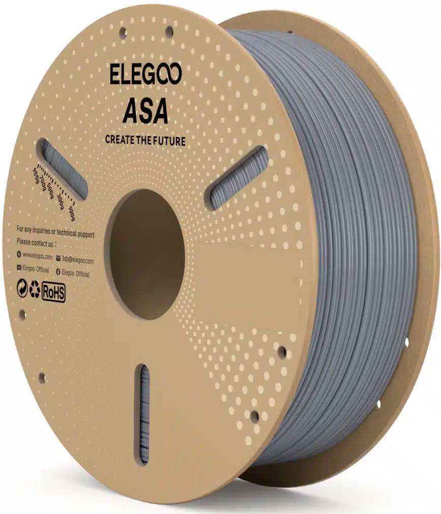 Filament Elegoo ASA 1.75mm, 1kg este un material tehnic durabil, rezistent la UV, intemperii si temperaturi ridicate, ideal pentru piese functionale si proiecte de exterior, oferind stabilitate excelenta la imprimare si performante profesionale constante.