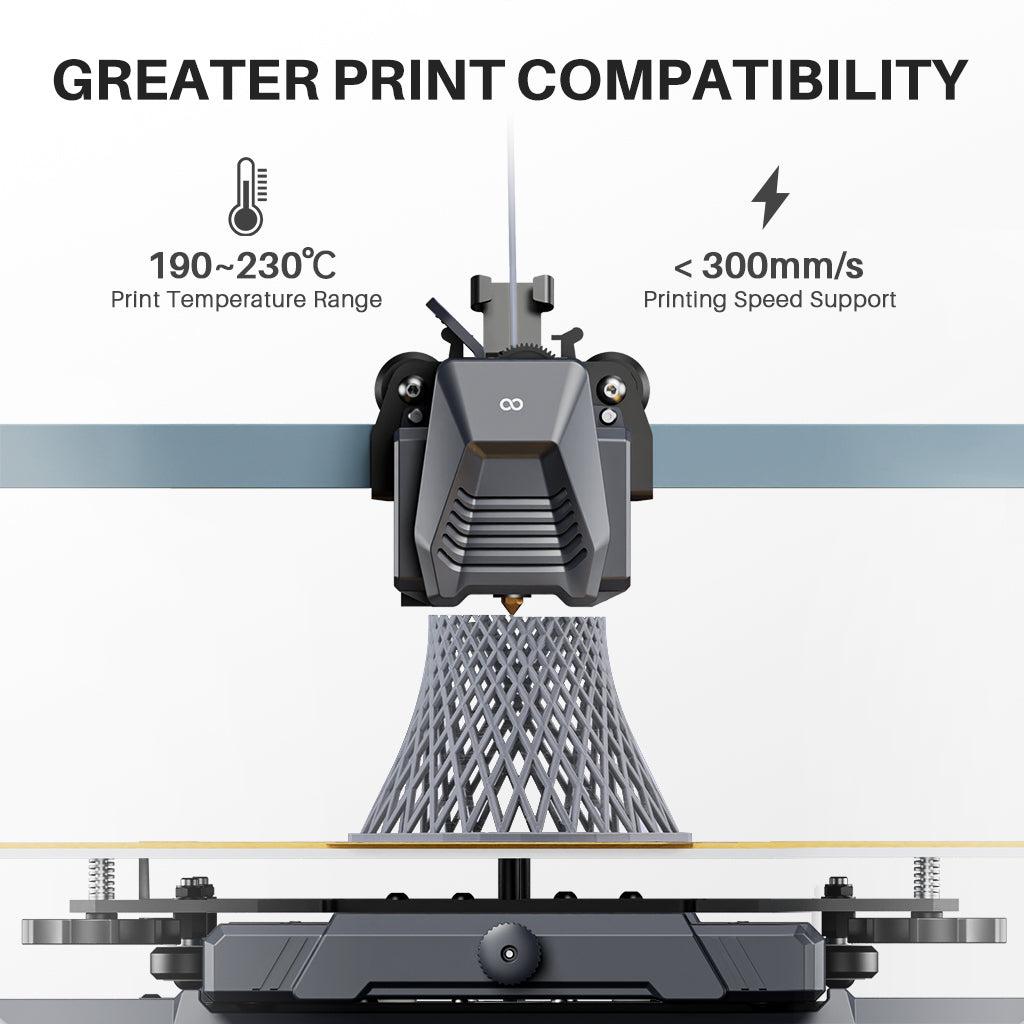 Filament Elegoo PLA PRO 1.75mm, 1kg este compatibil cu toate imprimantele FDM care utilizeaza filament de 1.75 mm, datorita flexibilitatii sale privind parametrii de printare. Intervalul recomandat pentru temperatura duzei este cuprins intre 180 si 210 grade Celsius, in timp ce temperatura patului de imprimare poate varia intre 35 si 65 grade Celsius. Aceasta versatilitate il face accesibil atat pentru utilizatorii incepatori, cat si pentru cei avansati, oferind rezultate consistente indiferent de modelul imprimantei utilizate.