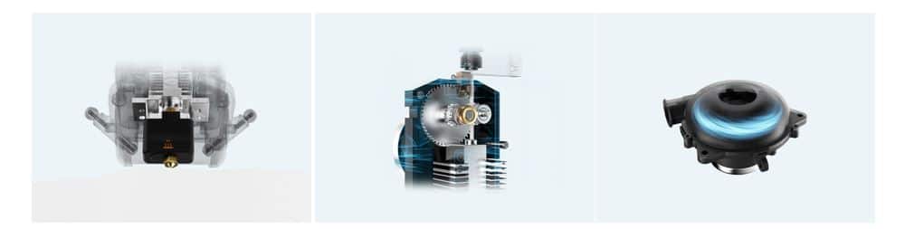 Unul dintre elementele cheie care permit atingerea vitezelor foarte mari este sistemul de racire cu un ventilator tip CPAP capabil sa atinga 30000 de rotatii pe minut. Aceasta tehnologie ajuta la solidificarea rapida a materialului, pastrand detaliile si acuratetea imprimarii chiar si in cazul modelelor complexe. In plus, imprimanta foloseste un sistem eficient de compensare a vibratiilor, care reduce efectele miscarilor rapide ale capului de imprimare si imbunatateste calitatea finala. Aceasta combinatie face ca imprimanta sa fie ideala pentru productia de piese precise, prototipuri detaliate si componente tehnice.