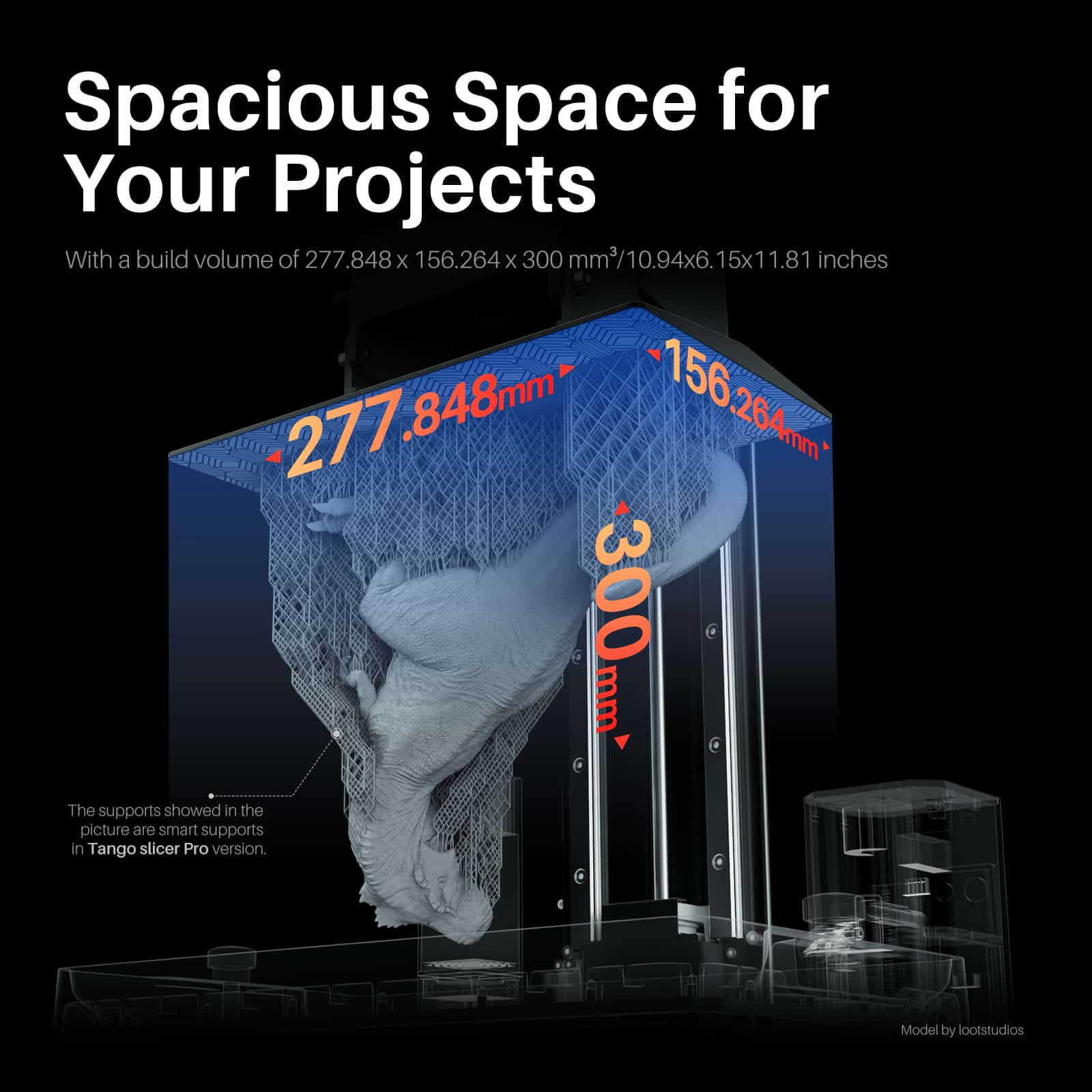 Una dintre caracteristicile definitorii ale Imprimantei 3D Rasina Elegoo Jupiter SE este volumul său de construcție impresionant: 277,85 × 156,26 × 300 mm. Acest spațiu permite utilizatorilor să imprime modele mari sau să efectueze serii de piese, economisind timp prețios în procesele de prototipare și producție. Aceasta înseamnă că nu mai trebuie să vizați piese mai mici sau să le împărțiți pentru a se încadra în limitele de volum mai restrânse ale altor imprimante.
