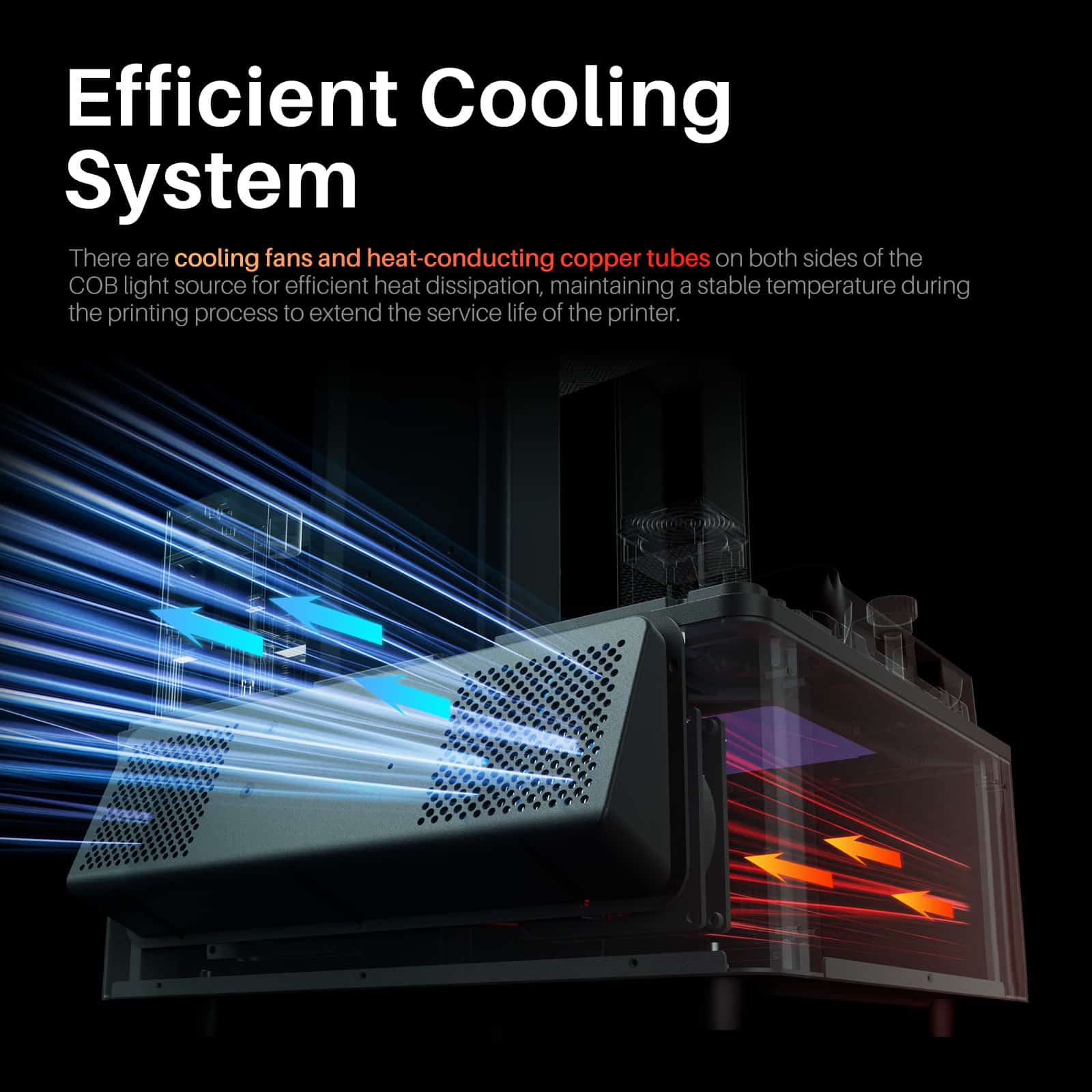 Echipată cu un sistem de răcire care include ventilatoare duale cu disipatoare de căldură din cupru, Imprimanta 3D Rasina Elegoo Jupiter SE se menține la temperaturi optime chiar și în timpul sesiunilor de imprimare de lungă durată. Acesta este un aspect esențial pentru asigurarea durabilității și performanței aparatului.