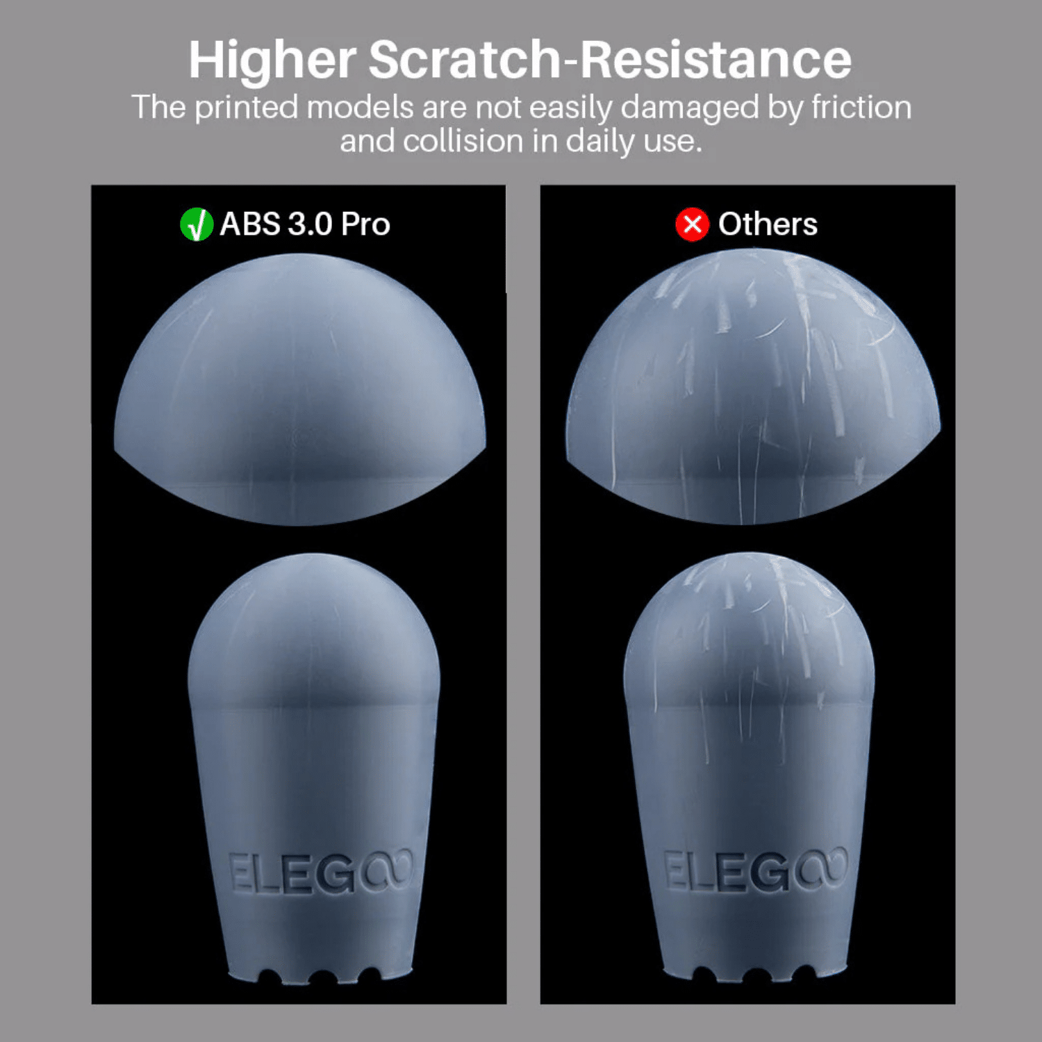 Una dintre trăsăturile cheie ale Rasinei 3D Elegoo ABS like V3.0 PRO este rezistența sa excepțională la zgârieturi. Aceasta asigură durabilitatea superioară față de versiunile anterioare, ceea ce face ca produsele realizate cu această rășină să păstreze integritatea și aspectul chiar și în scenarii de utilizare frecventă. Astfel, este o alegere excelentă pentru proiectele care necesită o estetică de înaltă calitate și un aspect de lungă durată.