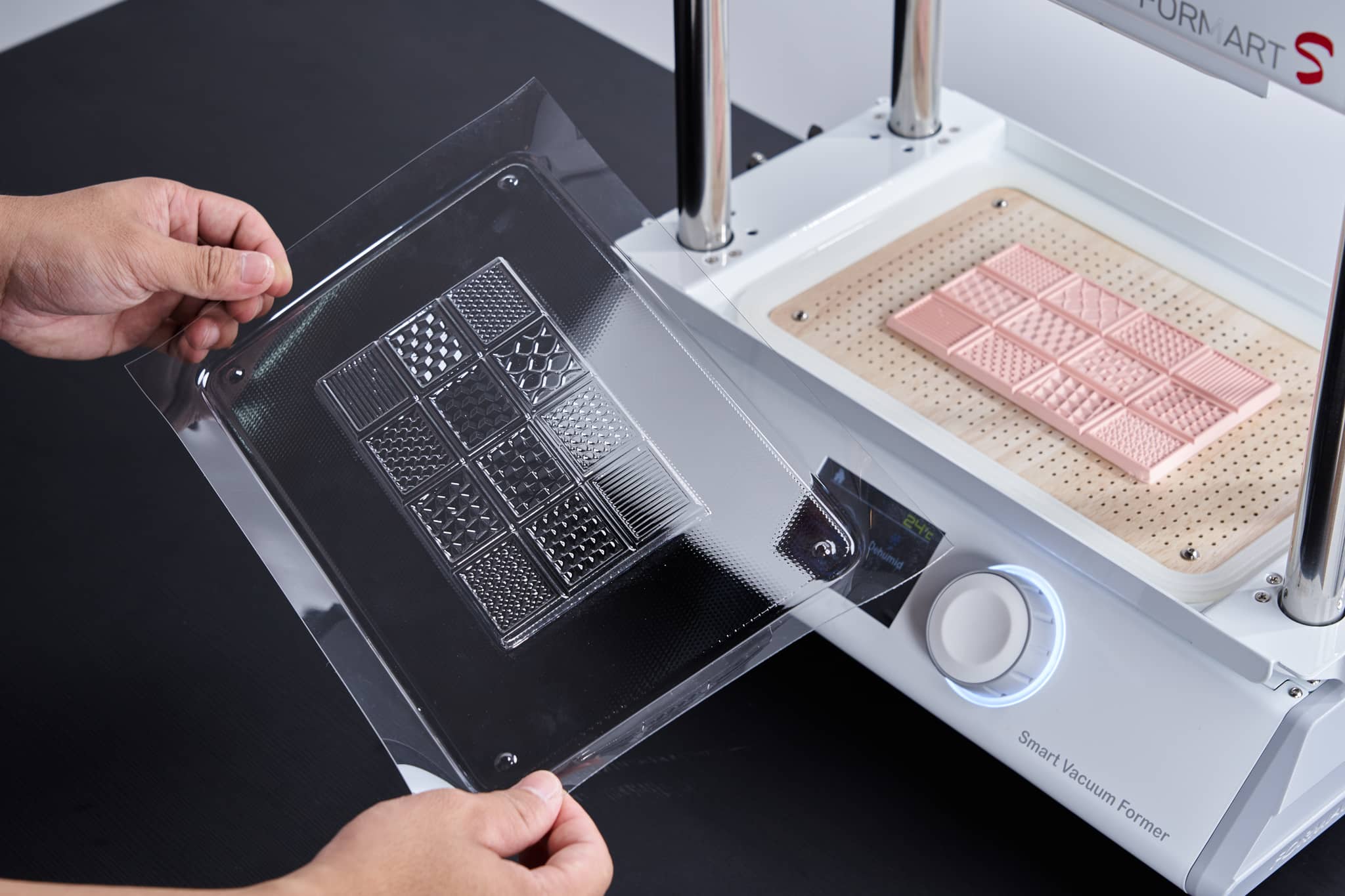 Pentru rezultate optime, foliile PET transparente sunt concepute sa fie termoformate la temperaturi cuprinse intre 120 si 125 grade Celsius. In faza de preincalzire se recomanda atingerea a aproximativ 140 grade Celsius, astfel incat materialul sa devina suficient de maleabil pentru a copia fidel modelul utilizat. Acest comportament previzibil asigura o experienta de lucru eficienta atat pentru incepatori, cat si pentru utilizatori avansati.